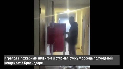 Игрался с пожарным шлангом и отломал ручку у соседа полуодетый неадекват в Краснодаре. Осуждаем