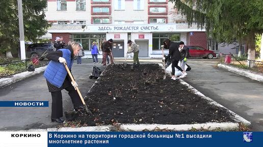 Улучшение городских пространств. В Коркино на территории Городской больницы №1 высадили многолетние растения.
