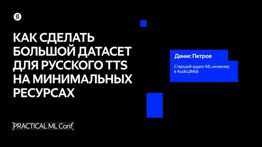 Как сделать большой датасет для русского TTS с минимумом ресурсов / Денис Петров