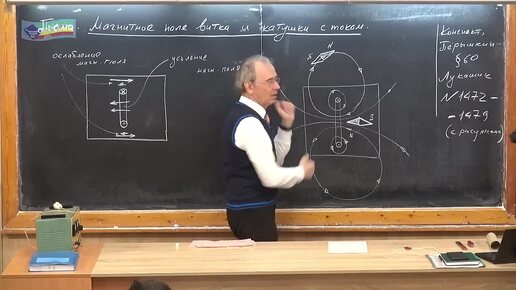 Ориентация магнитных стрелок в поле витка с током