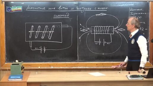Расположение магнитных стрелок в магнитном поле соленойда