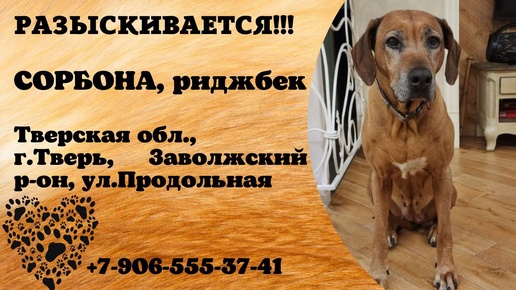 Пропала собака! СОРБОНА, риджбек. Тверская обл., г.Тверь.