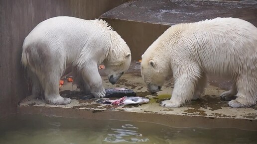 Медвежатам Белке и Стрелке просто съесть рыбу не интересно! Ее надо искупать, а потом поймать заново!