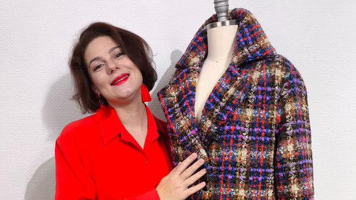 Пошив цветного пальто из шерсти букле в клетку. Работа 65т.р.