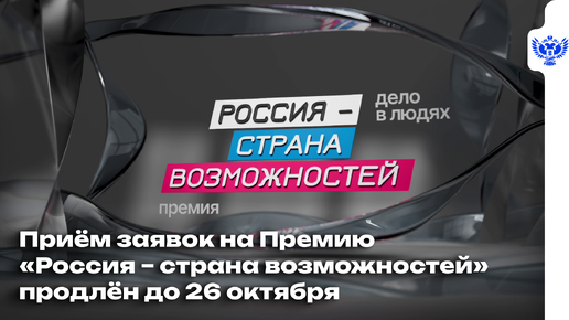 Приём заявок на Премию «Россия – страна возможностей» продлён до 26 октября
