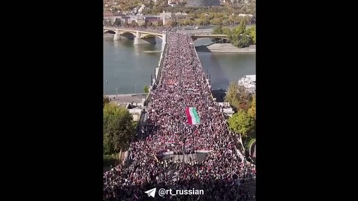 Масштаб антивоенного марша в Будапеште — видео с воздуха