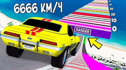 ТЕПЕРЬ С ТРАМПЛИНОМ! СПУСК БЕЗ ТОРМОЗОВ С ОГРОМНОЙ ЛЕСТНИЦЫ НА РАНДОМНЫХ МАШИНАХ В ГТА 5!