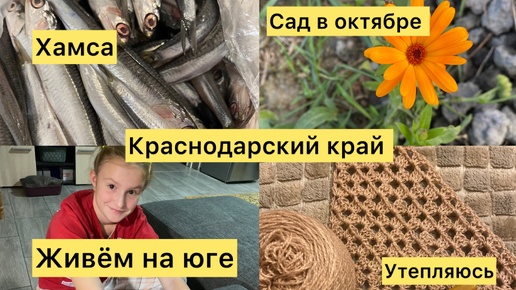 Жизнь на юге. Сад в октябре. Персик погиб. Собираем яблоки. Хамса любимая рыба. Вяжу из шерсти.
