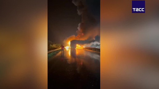 Мгновенный взрыв: мотоцикл протаранил топливный бак автобуса в Индии