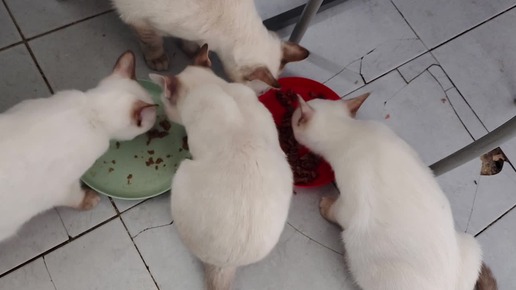 Утренняя кормежка кошек и котят, все по полочкам, каждому свое