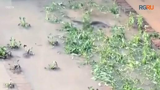 Два гигантских сома заплыли к дядьке на участок после наводнения