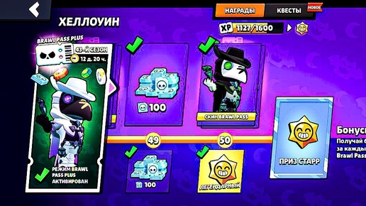 Купили Brawl Pass на Ворона, выпали скины на Диномайка и Кольта,и другое - с моим братом Vindis!