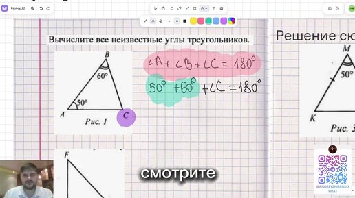 Смотри основы геометрии. Как найти неизвестный угол в треугольнике. Примеры с решением