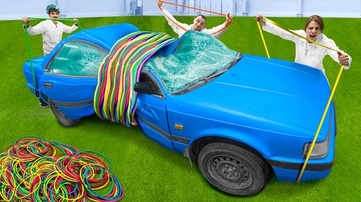 РАЗДАВИЛИ МАШИНУ МЕТРОВЫМИ РЕЗИНКАМИ!