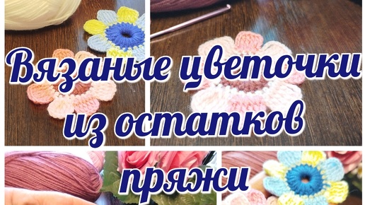 Вязание крючком для начинающих#вязаные крючком цветочки из остатков пряжи#