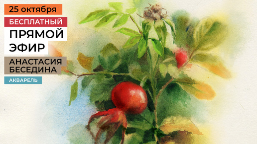 Ветка шиповника. Рисуем акварелью с Анастасией Бесединой. Бесплатный онлайн-урок для взрослых.
