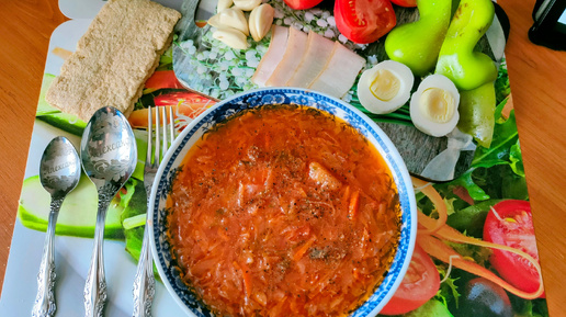 ОБЖОР ЕГО ВЕЛИЧЕСТВО БОРЩ! С САЛОМ И ЧЕСНОКОМ / МУКБАНГ