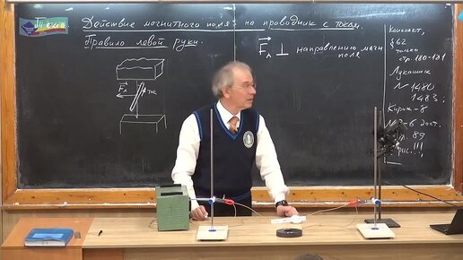 Задача, в которой сила Ампера перпендикулярна направлению магнитного поля и направлению тока.