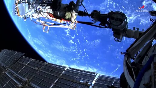 Выход в открытый космос Сергея Рыжикова и Алексея Зубрицкого