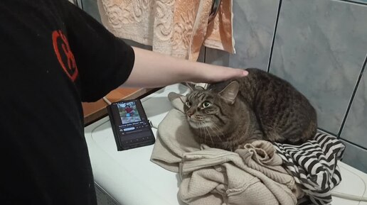 Наконец-то хоть какое-то приблизительное поглаживание Боськи. Кошка терпит -ждет пока Женька научится проявлению любви♥️