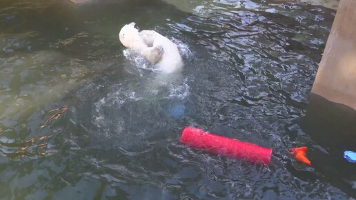 Белка прыгает в бассейн к Стрелке чтобы побороться. 18.10.2025