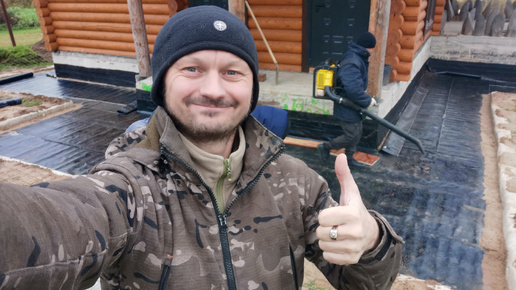 УСТРОЙСТВО БЕТОННОЙ УТЕПЛЁННОЙ ОТМОСТКИ 🏠 ЗАСЫПКА ПЕСКА С ТРАМБОВКОЙ И УКЛАДКА ГИДРОИЗОЛЯЦИИ 👷🛠️🏘️