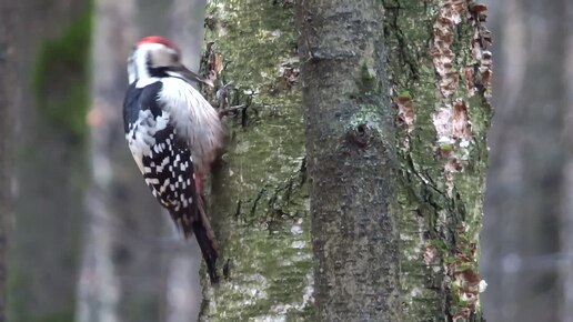 Малый пёстрый дятел, комок пуха с клювом
