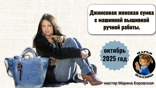Женская джинсовая сумка "Страж" с машинной вышивкой от мастера Марины Боровской.