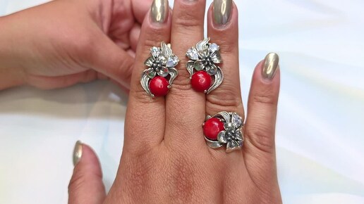 Украшения из серебра с обсидианом, кораллом, лабрадором и топазом | Серебряный двор