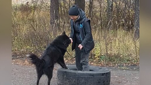 Пёс Мишка, весёлый и находчивый, покоритель шинной крепости