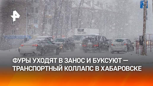 Транспортный коллапс в Хабаровске: фуры уходят в занос и буксуют из-за метели