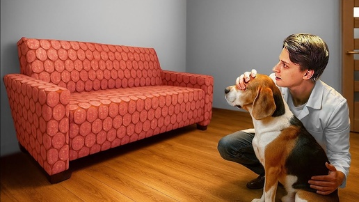 РЕАКЦИЯ СОБАКИ НА ДИВАН ИЗ КОЛБАСЫ!