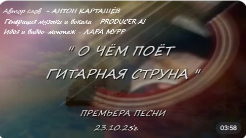 Премьера песни и клипа "О ЧЁМ ПОЁТ ГИТАРНАЯ СТРУНА" слова Антон Карташёв, музыка,вокал Producer AI, видеомонтаж Лара Мурр