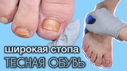 Широкая стопа. Последствия тесной обуви: стержневые мозоли, предногтевые мозоли, вросшие ногти, толстые ногти Полная обработка на видео ❤️