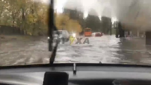 Машины плывут по шоссе после ливня в Запорожье