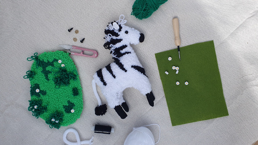 Видеоинструкция. Как сделать игрушку в ковровой технике. Зебра