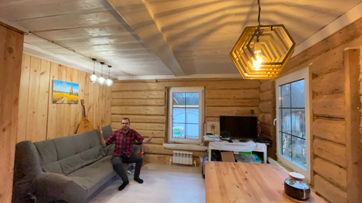 Освещение деревянной половины дома прадеда готово! Самодельные светильники, новая скамейка и дрова
