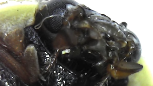 Божья коровка нервничает. Нервы никуда не годятся. Съёмка USB-микроскопом.