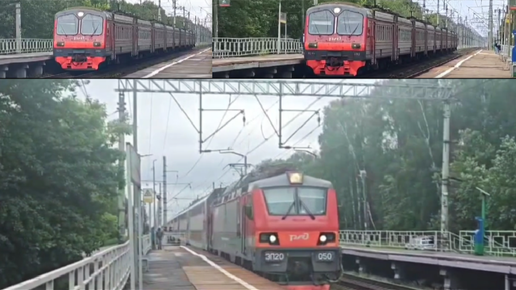 Поезда на платформе 43 км , ЭП20 с пассажирским поездом и другое