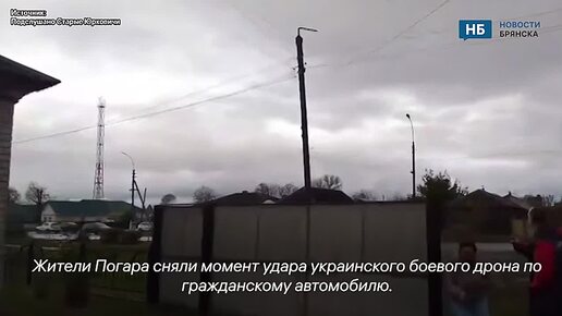 На видео попал момент удара боевого дрона ВСУ по гражданскому авто в Погаре