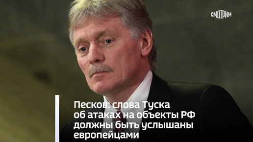Песков: слова Туска об атаках на объекты РФ должны быть услышаны европейцами