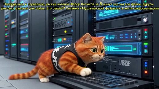 Пробравшись в серверную, рыжий котенок Фёдор Котюхов за 5 минут удалил все фейки, вирусы и рекламу шампуня для собак.
