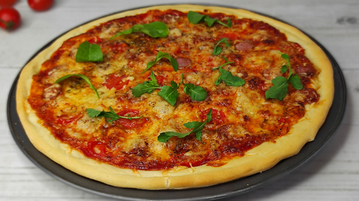 Вкусная ДОМАШНЯЯ ПИЦЦА в духовке. ПИЦЦА с помидорами и колбасой. ТЕСТО для ПИЦЦЫ!