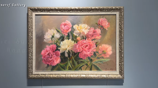 Презентация в галерее живописи картины художника Татьяны Южной «Пионы Сара Бернар и Мадам Лемуан»