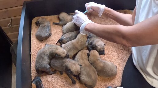 Как выкормить 10 щенков КАРЕЛО-ФИНСКОЙ ЛАЙКИ - 9-ЫЙ ДЕНЬ! :: How to FEED the cubs of FINNISH SPITZ?