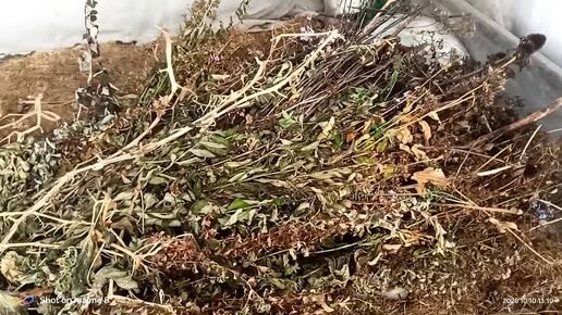 Перемалываю томатную ботву измельчителем на мульчу на грядки 10.10.25г.