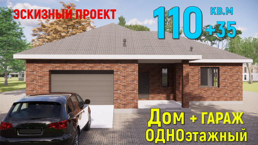 КРАСИВЫЙ КИРПИЧНЫЙ ОДНОЭТАЖНЫЙ ДОМ 110 кв. + ГАРАЖ 35 кв. 15х16м. БАВАРСКАЯ КЛАДКА. 3D ПРОЕКТ