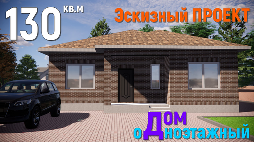 КРАСИВЫЙ КИРПИЧНЫЙ ОДНОЭТАЖНЫЙ ДОМ 130 кв.м. 14м*11м. ЭСКИЗНЫЙ ПРОЕКТ