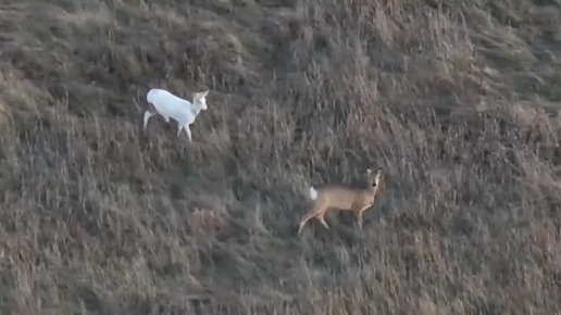 Косуля-альбинос попала в объектив камеры в Новосибирской области