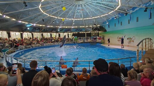 Дельфины выступают в дельфинарии